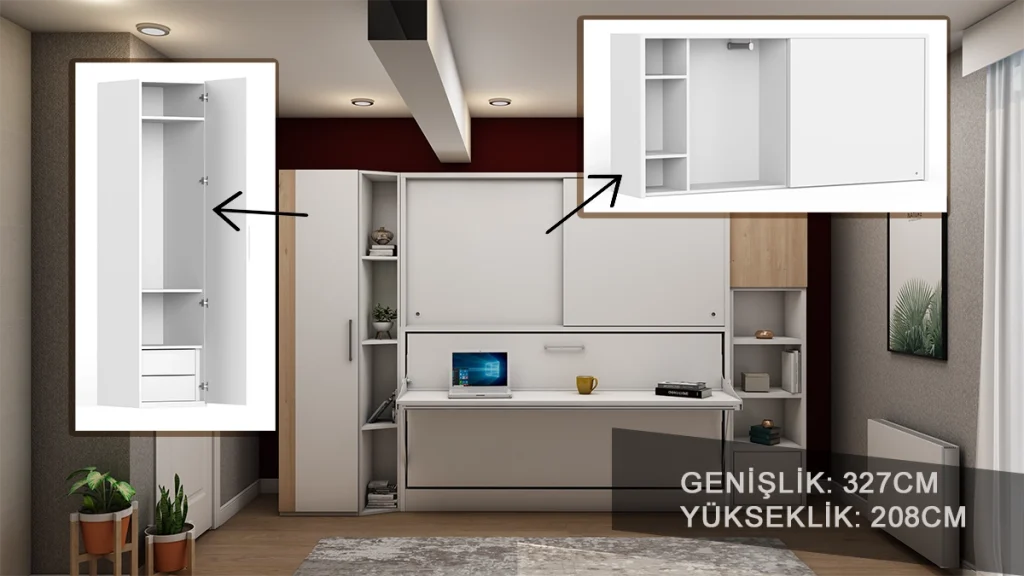 Yan Dolap: Giysi, çanta ve kişisel eşyaları düzenli şekilde saklama imkânı.