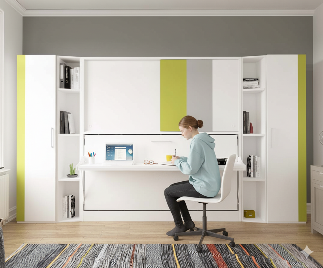 📌 Academy Set #2, dar alanlarda bile maksimum verimlilik sağlayarak genç odalarını çok amaçlı bir yaşam alanına dönüştürür.