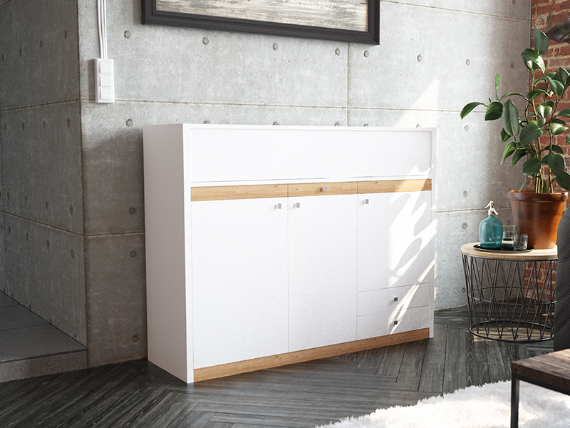 - Beyaz ve doğal ahşap (meşe tonları) kombinasyonu, modern ve ferah bir görünüm sağlar.