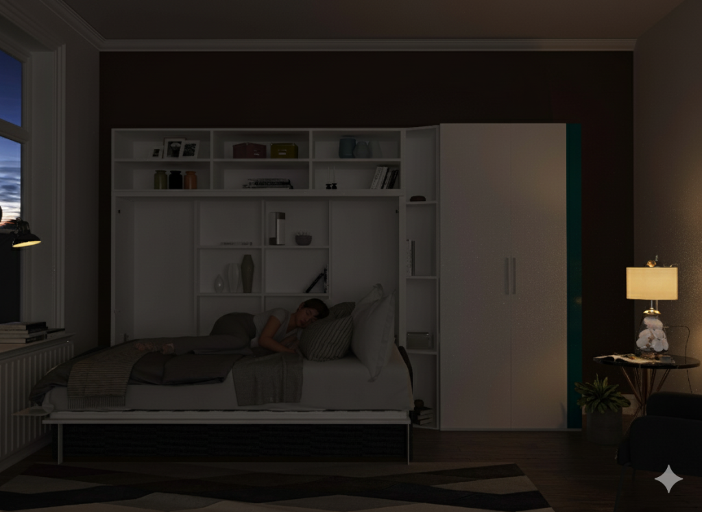 Bu sistem, sıradan mobilyaların sınırlarını ortadan kaldırır. Gündüzleri, estetik ve modern çizgilerle tasarlanmış rahat bir kanepe ve düzenli bir oturma alanına sahip olursunuz. Ancak akşam olduğunda, tek bir kolay hareketle kanepe yerini tam donanımlı, konforlu bir duvar yatağına bırakır. Artık misafir ağırladığınız veya çalıştığınız alan, huzurlu bir yatak odasına dönüşmüştür.