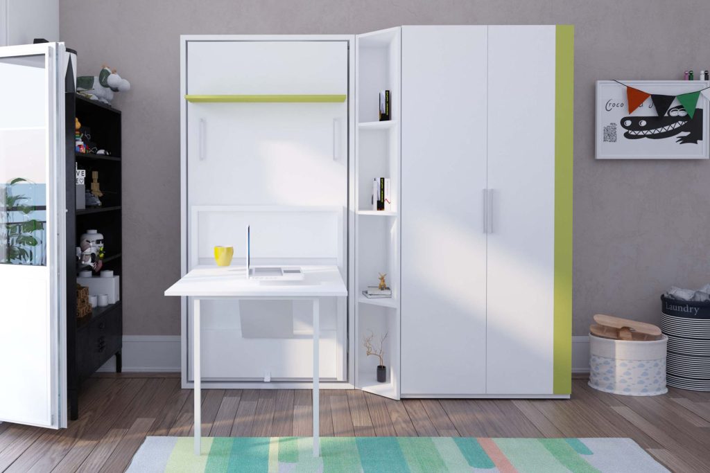 Happy Frogg Desk, açılır kapanır sistem sayesinde masa yüzeyini kullanırken yatağı tamamen gizler.  Özellikle küçük metrekareli evler, çocuk odaları ve genç odaları için geliştirilmiş bu model; gündüz masa, gece yatak fonksiyonuyla yaşam alanlarını verimli kullanmayı sağlar.