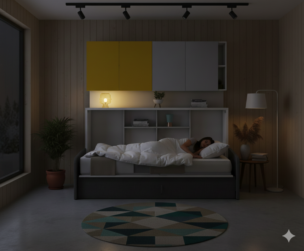 • Alan Tasarrufu: Küçük metrekareli alanlarda oturma ve uyku alanını tek bir modülde birleştirerek yaşam alanını maksimize eder.