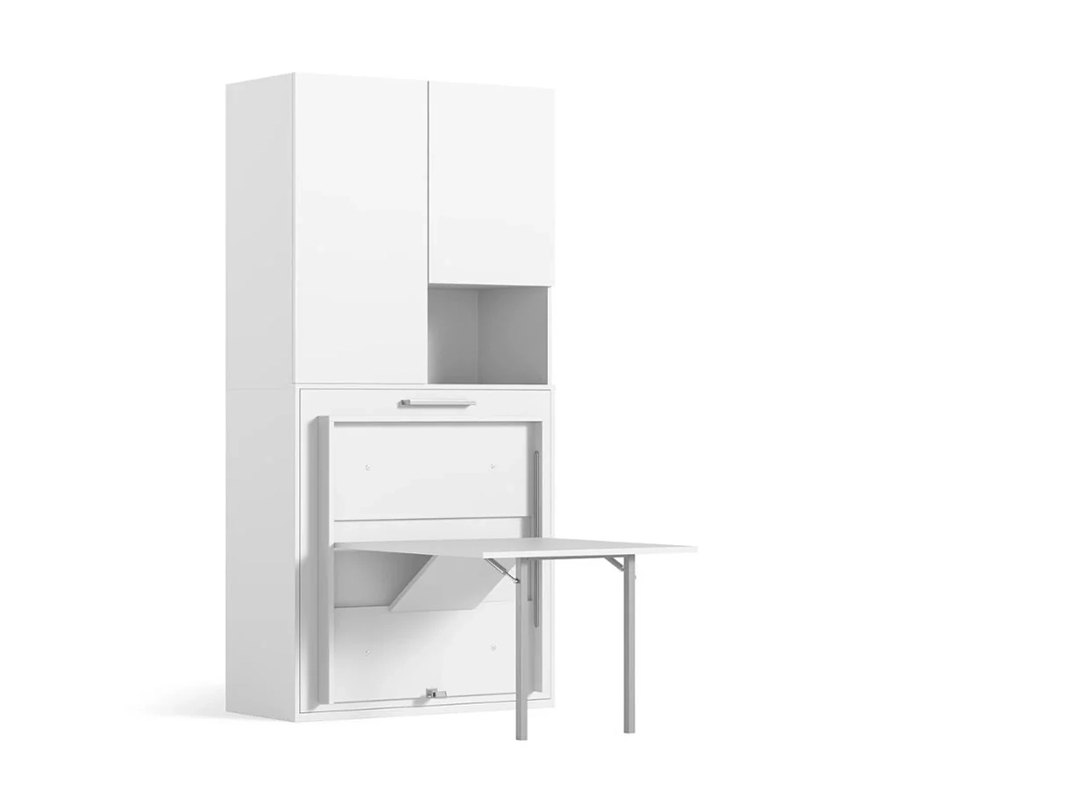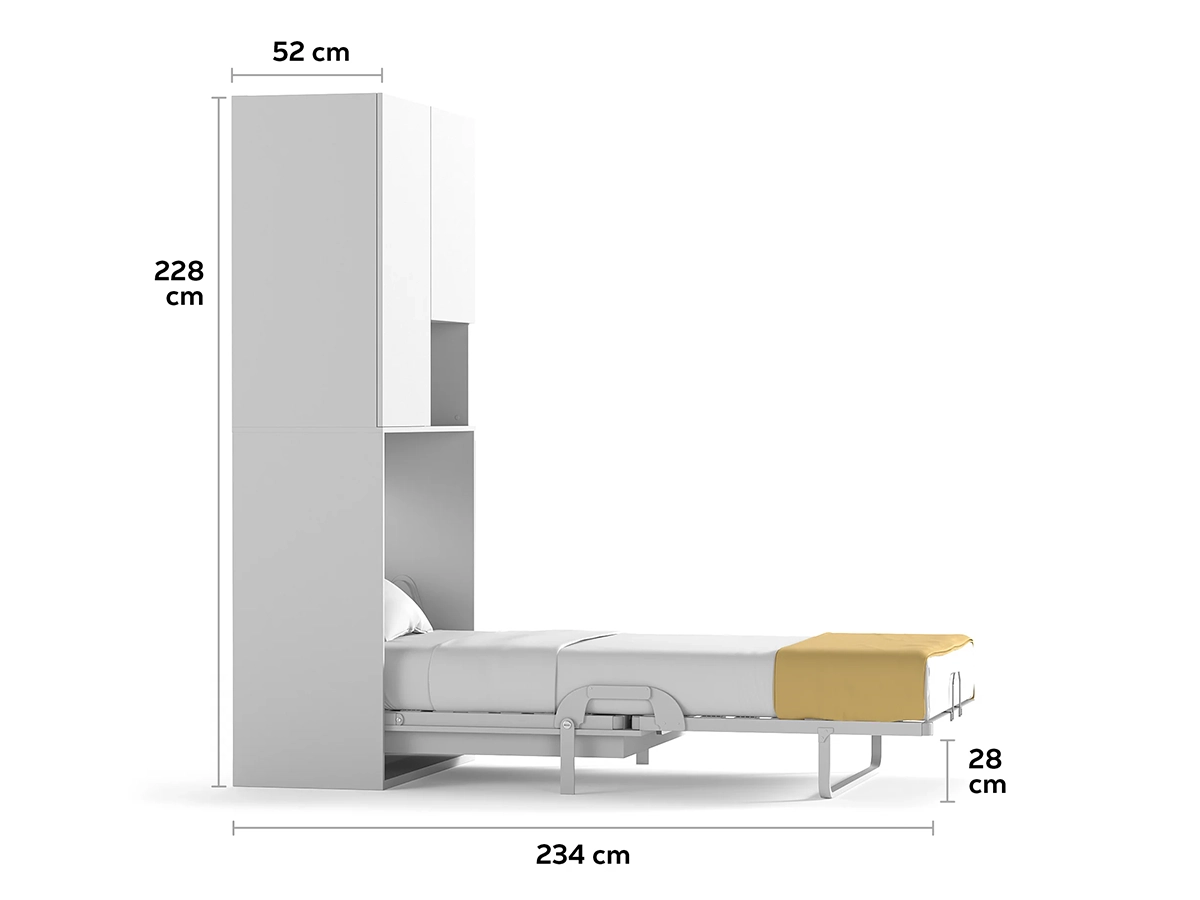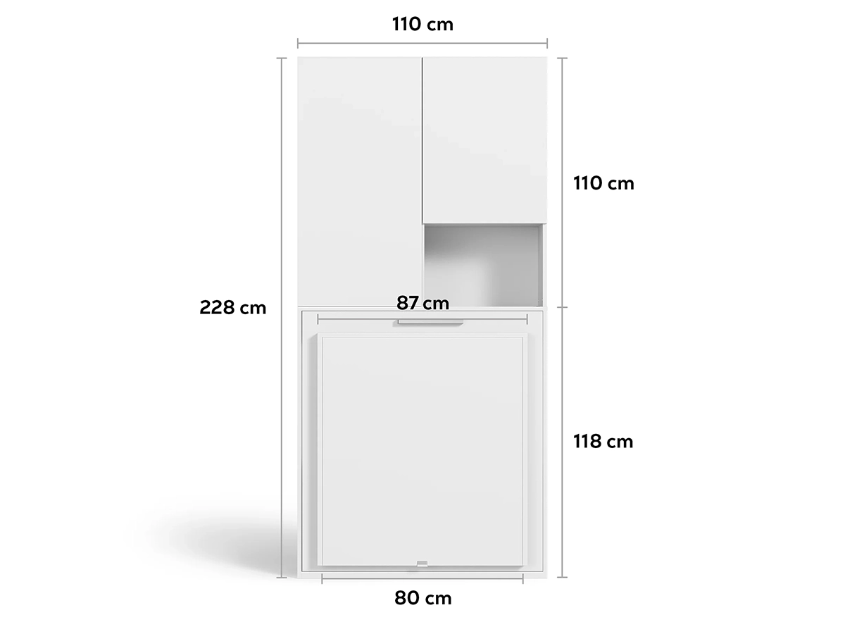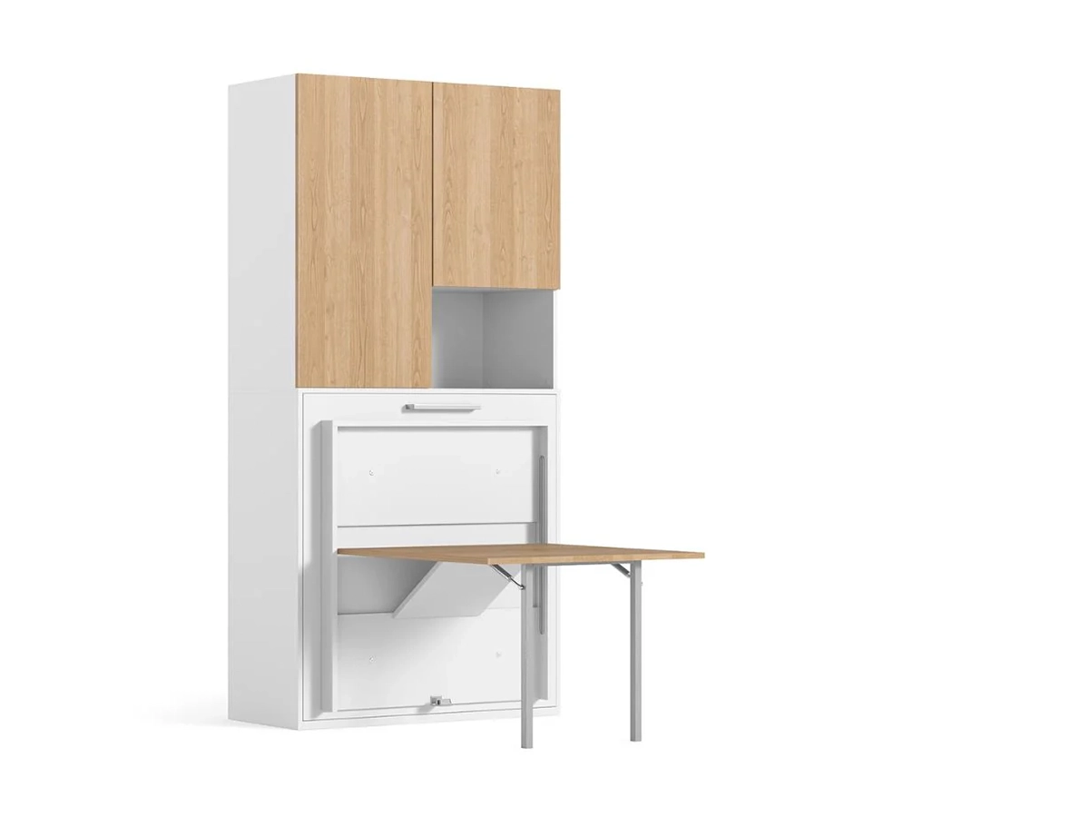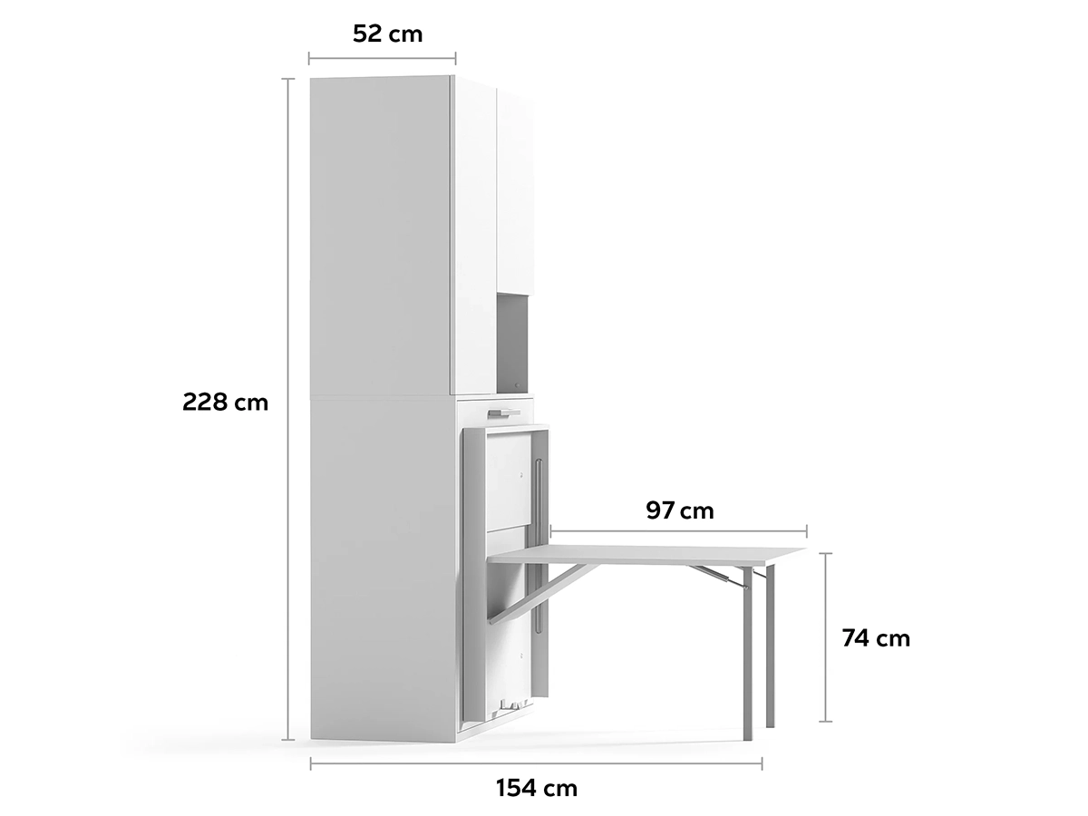 Masa fonksiyonu modüler olarak eklenebilir veya tercih edilmeyebilir. Yatağın kapanma sistemi standart duvar yatağı modellerimizden farklı olarak özel bir sistem ile 2 parça halinde ve katlanarak