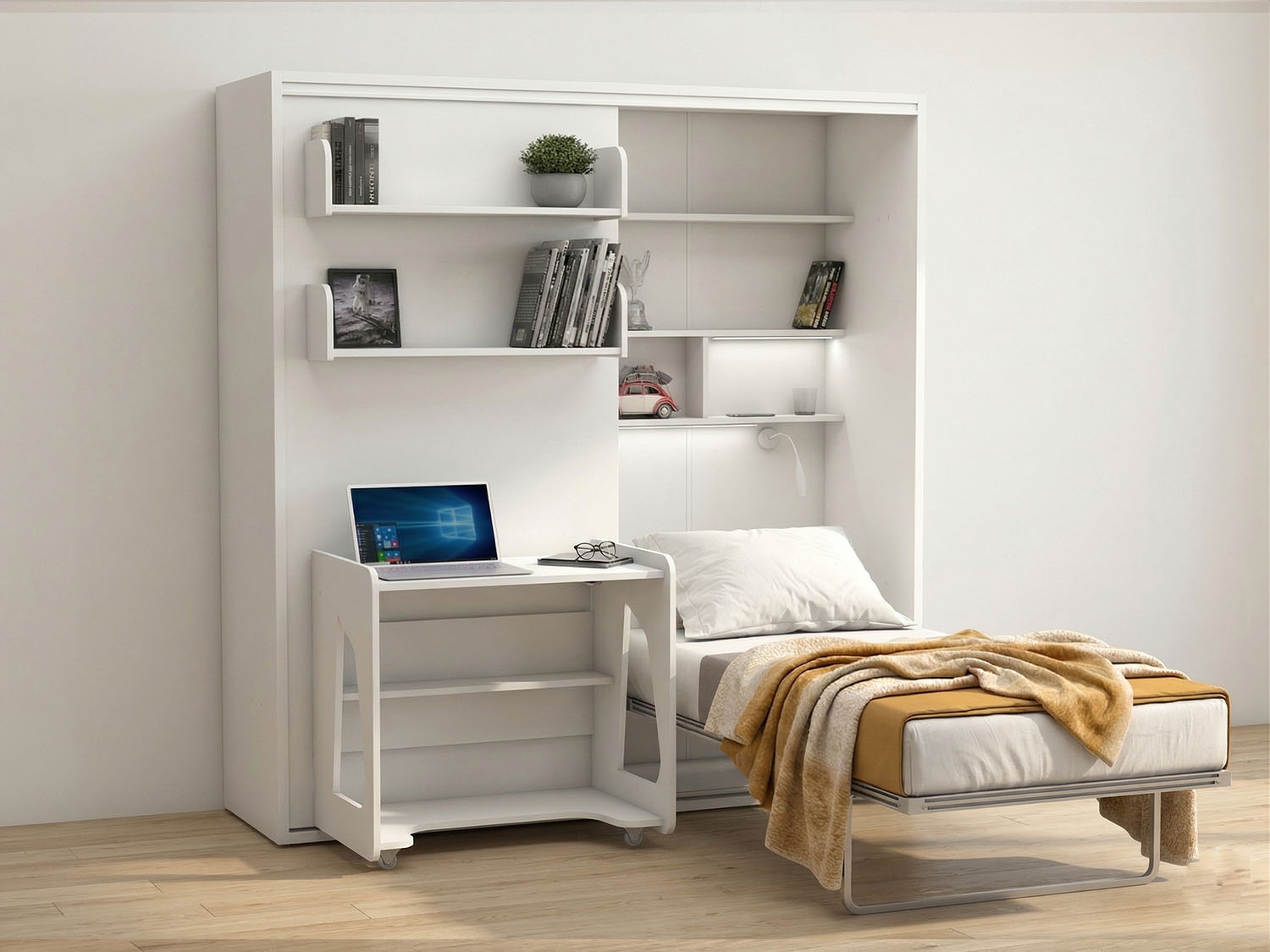 Studio 5 çalışma masalı duvar yatağı ile odanız ne kadar küçük olursa olsun yer tasarrufunu özgürce yapabilirsiniz. Uyuma, çalışma, yeme-içme, depolama ihtiyaçlarınızın tümünü Studio 5 depolama alanlı yatak ile zahmetsiz bir şekilde karşılamanın ayrıcalığını yaşayabilirsiniz.