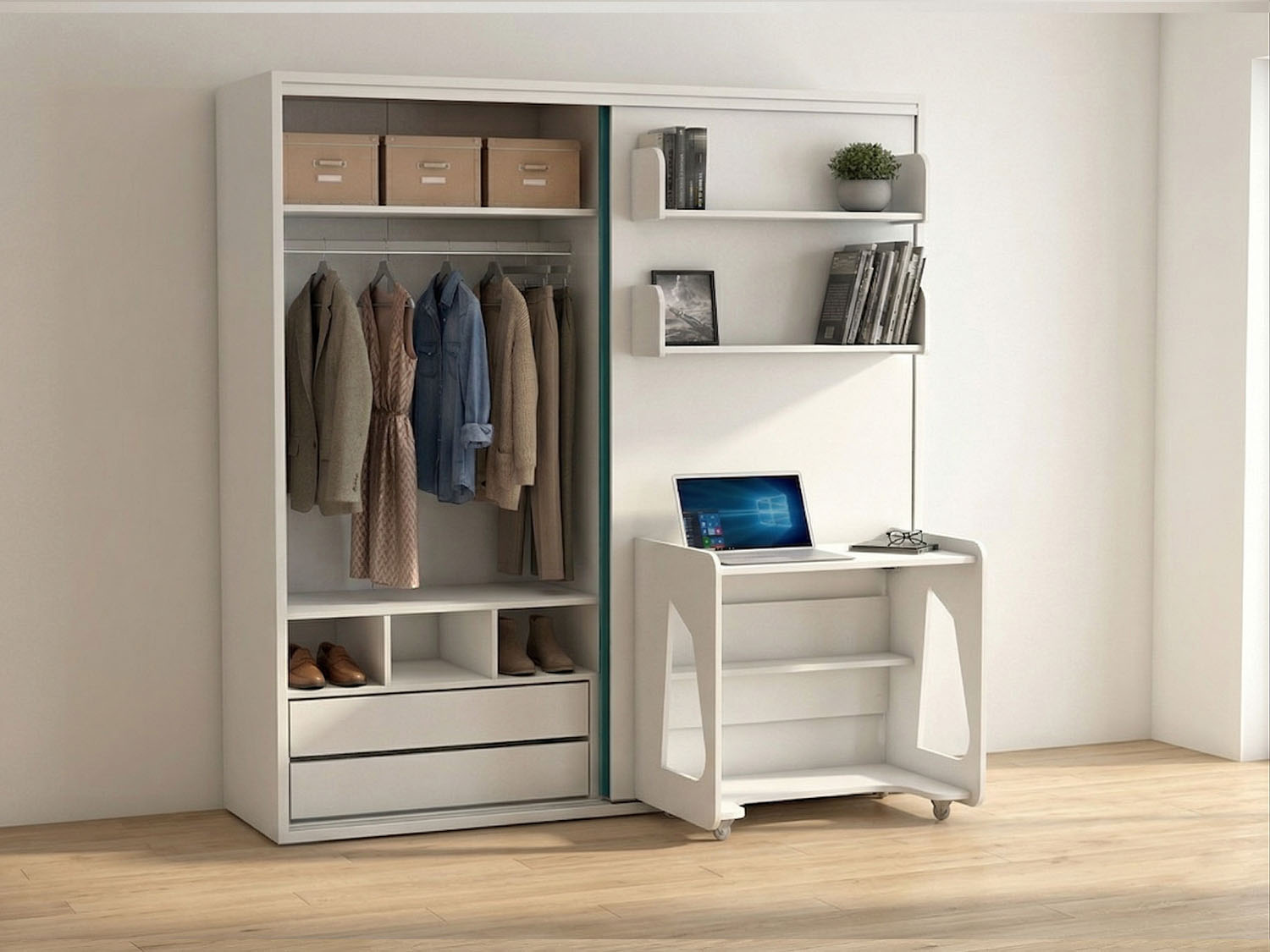 - Studio 5,dar bir alanda bile çekmeceli ve dolaplı gardrop çeşitlerini barındırdığı için son derece geniş depolama bölümü oluşturabilmenize izin verir.