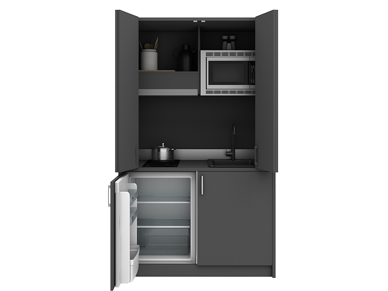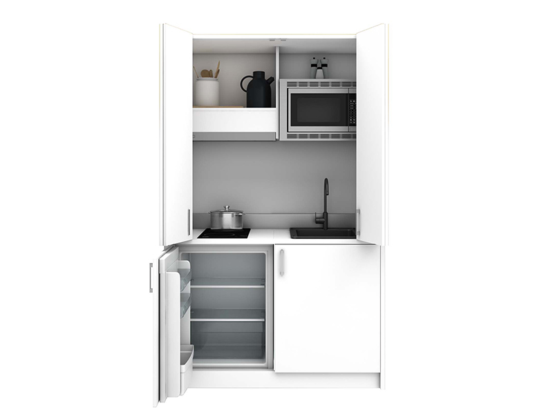 Vento Gizli Mutfak, küçük alanlar için tasarlanmış modern, şık ve son derece işlevsel bir kompakt mutfak çözümüdür. Stüdyo daireler, ofisler, otel odaları ve küçük yaşam alanları için mükemmel olan bu model, hem kullanım kolaylığı sunar hem de yaşam alanınızı düzenli ve estetik kılar.